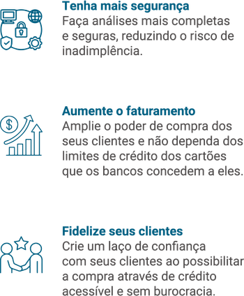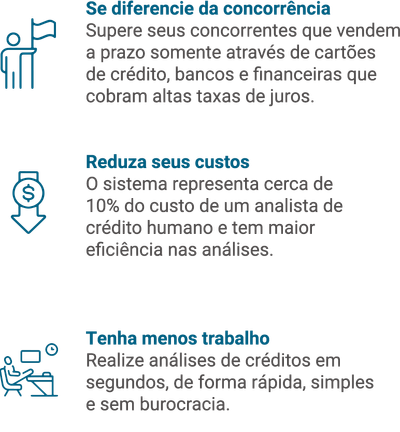 Utilizando uma combinação de informações provenientes de bancos de dados e birôs de crédito, ele valida todas as informações fornecidas pelo cliente, analisa o perfil de risco e usa essas variáveis para retornar uma análise de crédito em poucos segundos.